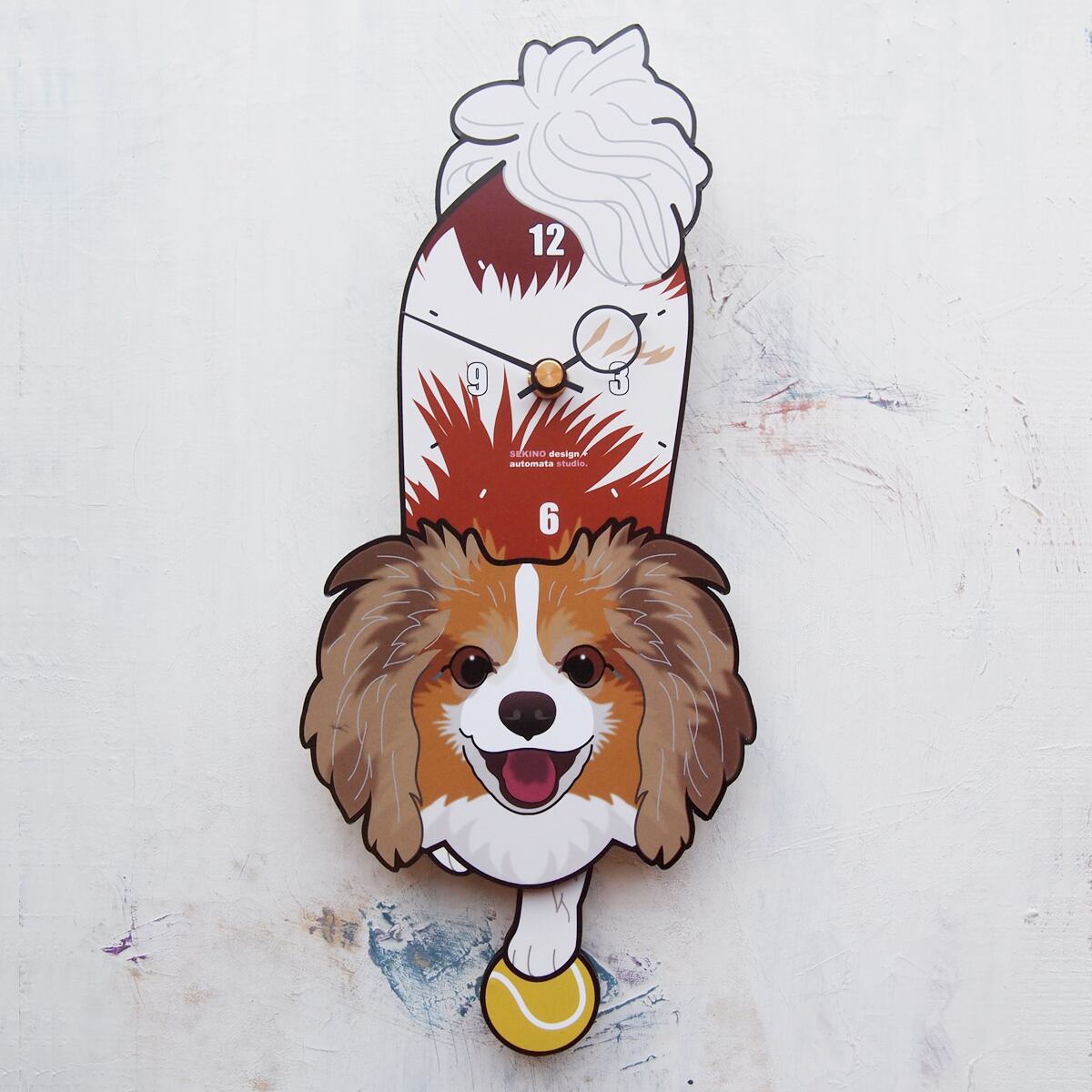 D-63 パピヨン茶白-01(口開き) - ペットの振り子時計