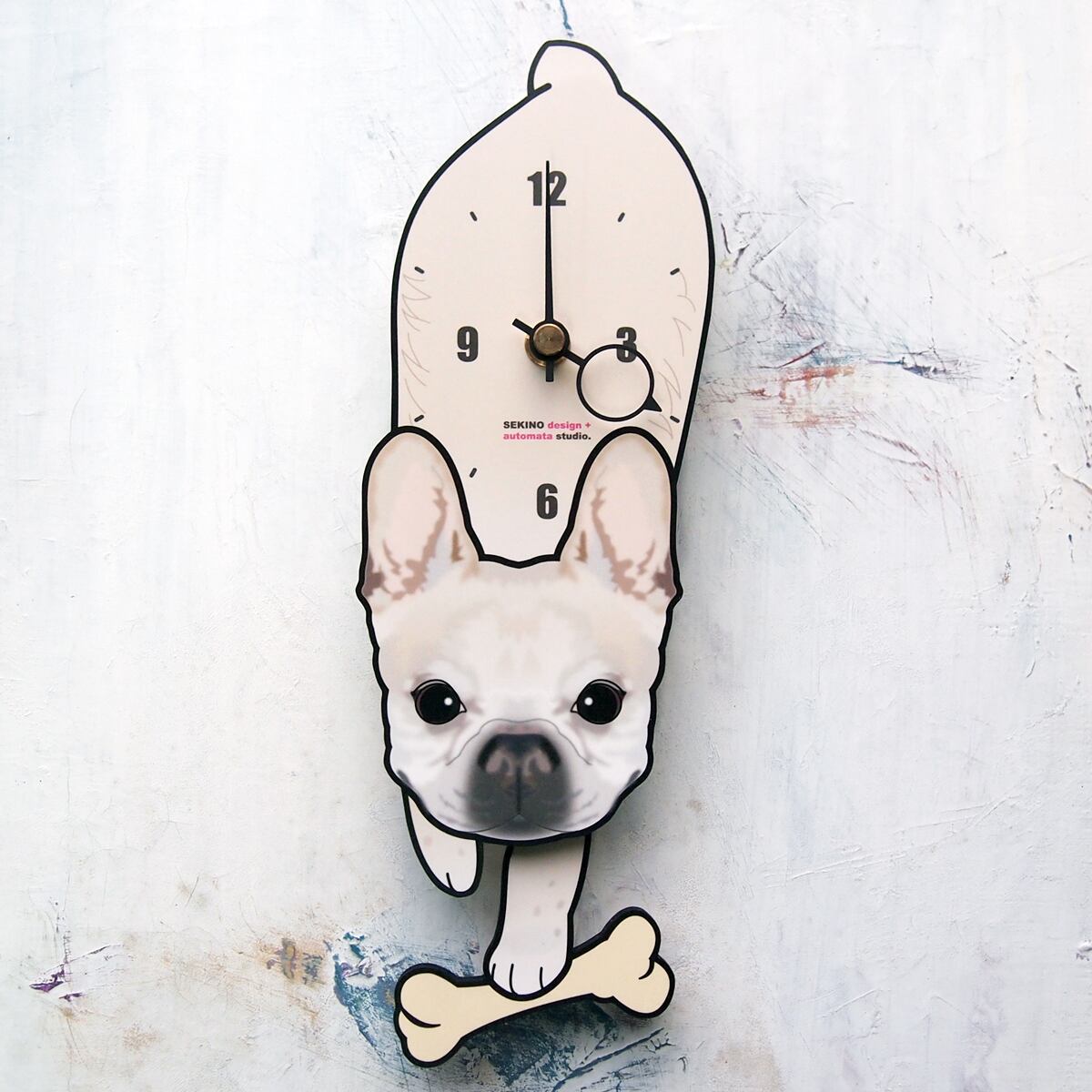犬・猫 ペットの振り子時計:手の部分が振り子になった壁掛け用の時計です。